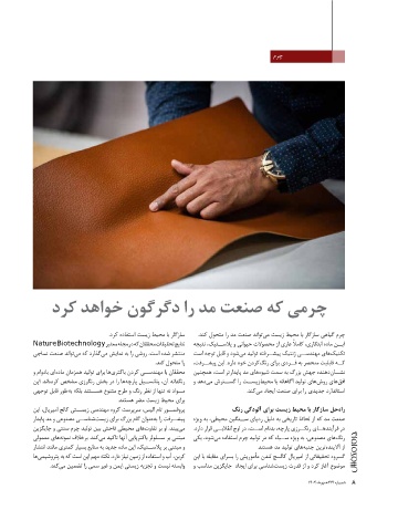 م یبیند .او بر تفاو تهای محیطی فاحش بین تولید چرم سنتی و جایگزین رنگهای مصنوعی ،به ویژه ســیاه که در تولید چرم استفاده میشود ،یکی