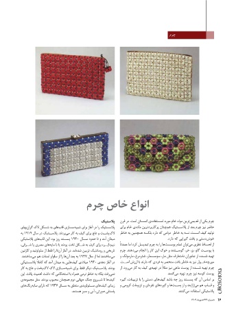 نم یرفت بلکه به خاطر نرمی همراه با استحکامی که داشت اهمیت یافت .این چرم تهیه شــده از پوست ماهی نیز مثل ًا در تهیهی کیف به کار م یرود .از